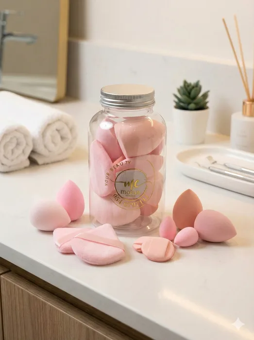 צנצנת ספוגיות איפור – בגוון ורוד פסטל | Moran Beauty 15 יח